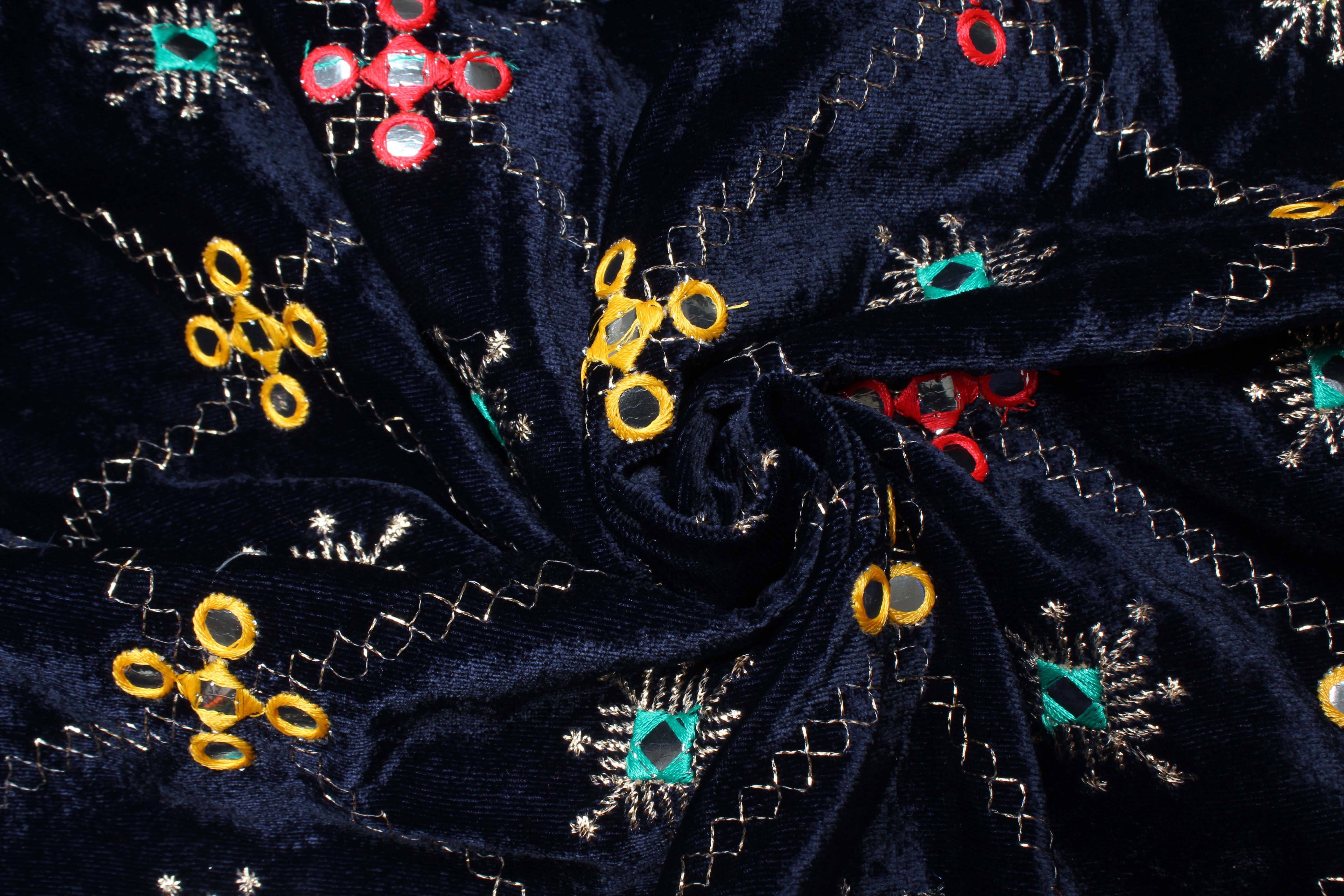Durga Unstitched Velvet Blouse Material Embroidered