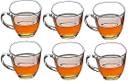 Durgma Pack of 6 Glass Oval Shape Square Crystal Clear Glass Tea Cup with Handle (Clear, Cup Set)