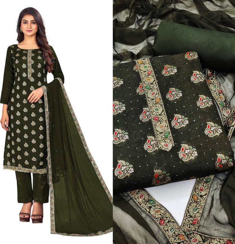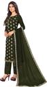 Flaunt a new ethnic look with this dress material. This Italian Leon Crepe suit is beautifully adorned with Print work comes along with solid Italian Leon Crepe bottom and martina chiffon dupatta makes it appear more adorning. Women can buy this suit to wear for their upcoming festivals, homely functions, parties, kitties, weekend get together. Get this unstitched suit stitched according to your fit and comfort. Team it with stylish accessories to make your looks more beautiful. Note:- The actual product may differ slightly in color and design from the one illustrated in the images when compared with computer or mobile screen.