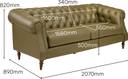 • W x H x D: 207 cm x 34 cm x 89 cm (6 ft 9 in x 1 ft 1 in x 2 ft 11 in)