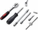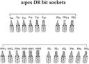 13 Pieces 1/4 inch DR Sockets: 4, 5, 5.5, 6, 7, 8, 9, 10, 11, 12, 13, 14 mm and 1 Piece 1/4 inch DR Bit Adaptor 21 Pieces 1/4 inch DR Bit Sockets: FD4, 5, 7 PH1, 2, 3 PZ1, 2, 3 HW3, 4, 5, 6, 7, 8 T10, 15, 20, 25, 30, 40; 3 Pieces Hex Key Wrenches: 5, 2, 5 mm 1 Piece 1/4 inch DR universal joint and 1 piece 1/4 inch DR sliding T bar 2 Pieces 1/4 inch DR Extension Bars: 2 inch and 4 inch; 1 piece 1/4 inch DR quick ratchet handle 1 Piece 1/4 inch DR Flexible Extension: 6 inch; 1 Piece 1/4 inch DR Spinner Handle: 6 inch