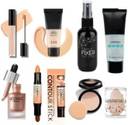 DUSSEN Face Makeup Liquid Shimmer Highlighter, HD Concealer, Matte Foundation, Fixer, Tube Primer, 3D Contour, Compact Powder Blender (8 Items in the set)