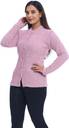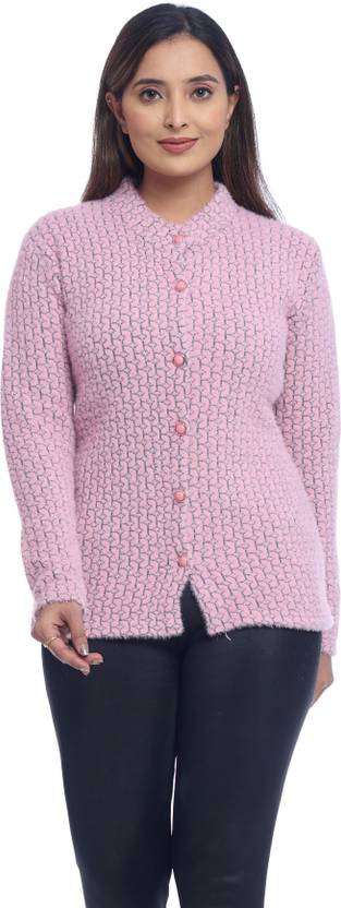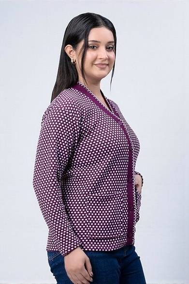 It features a textured surface, a round neck, full sleeves, and a button closure
