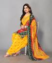 Flaunt a new ethnic look with this dress material. This Italian Leon Crepe suit is beautifully adorned with Print work comes along with solid Italian Leon Crepe bottom and martina chiffon dupatta makes it appear more adorning. Women can buy this suit to wear for their upcoming festivals, homely functions, parties, kitties, weekend get together. Get this unstitched suit stitched according to your fit and comfort. Team it with stylish accessories to make your looks more beautiful. Note:- The actual product may differ slightly in color and design from the one illustrated in the images when compared with computer or mobile screen.