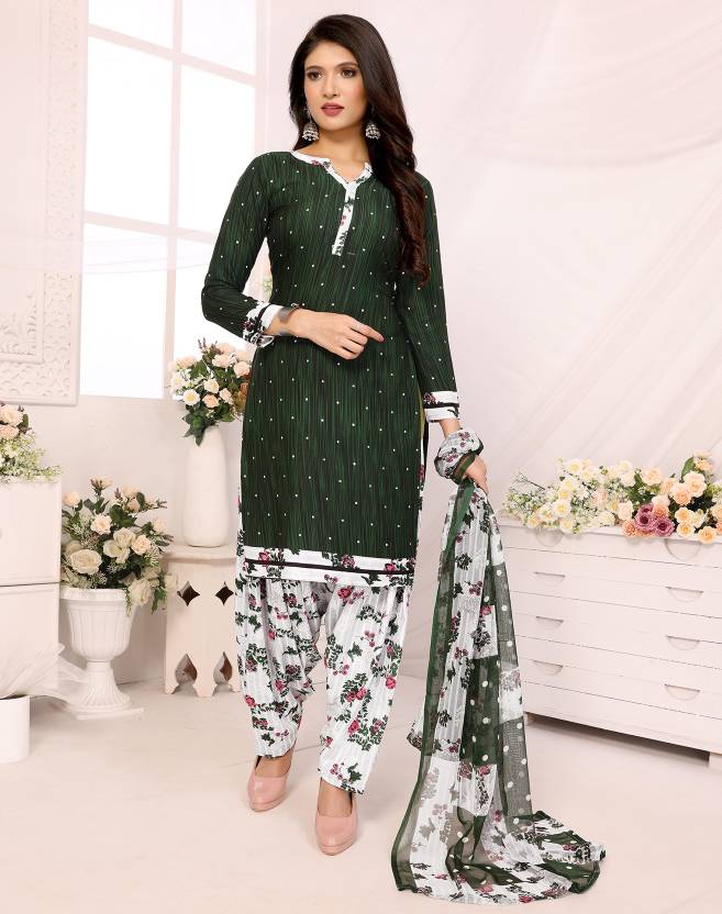 Flaunt a new ethnic look with this dress material. This Italian Leon Crepe suit is beautifully adorned with Print work comes along with solid Italian Leon Crepe bottom and martina chiffon dupatta makes it appear more adorning. Women can buy this suit to wear for their upcoming festivals, homely functions, parties, kitties, weekend get together. Get this unstitched suit stitched according to your fit and comfort. Team it with stylish accessories to make your looks more beautiful. Note:- The actual product may differ slightly in color and design from the one illustrated in the images when compared with computer or mobile screen.