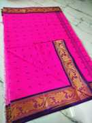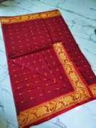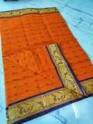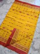 This saree is an outfit which women can carry off with great panache. It come with beautifully designed blouse piece with matching border on saree. With the right material and drape, it can accentuate the beauty of women of all ages and forms. Be it a festival or a wedding, sarees are a hot favourite worldwide, and it’s easy to see why. Sarees give you the opportunity to give a modern touch to a traditional Indian attire. Georgette is popular for its good drape, elasticity and characteristic lustrous surface. It has a complex weave that makes for versatile fabrics that can be used in evening wear, Casual Wear etc. You can choose your accessories according to the occasion. This saree can be paired with stilettos or peep toes, and jewelry to further enhance the look of the saree. Jewellery to wear with saree can range from one statement piece, to a full feast of small earrings, necklace, nose ring, and bangles. WoodenTant Navy Blue Cotton Designer Wear Handloom Tant Saree With Zari border and Buti Work with Starch on Saree . This tangail style tant saree can be worn with plain red or golden color blouse piece.This pure cotton tant saree do not have blouse piece. Bengali Tant Saree. This is 100% genuine woven thread buti work and designer border work saree. This is not simple print saree rather buti and border was made by thread work. This hand woven saree is authentic pure Bengali tant saree with high quality starch on it.