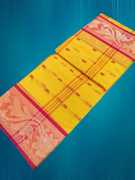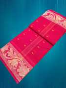 Comfortable Cotton Fabric: Made from soft, breathable cotton, Taant sarees are airy and lightweight, making them comfortable for everyday wear and especially suited for hot and humid conditions.