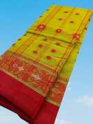 Comfortable Cotton Fabric: Made from soft, breathable cotton, Taant sarees are airy and lightweight, making them comfortable for everyday wear and especially suited for hot and humid conditions.
