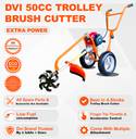 Trolley brush cutters are Easy to start, less noise, less vibration, and true specialists for tough and rugged terrains. They can work where many other machines like lawnmowers fail to work. Brush cutters these days are the most multipurpose machines being used in gardens, forests vegetables, weeding, harvesting, etc. It can be used with many attachments like Blades, nylon rope, weeding rotary, grass trimming, hedge trimmer, etc. Brush cutters are very useful in carrying out tough maintenance work on steep slopes – with their high-performance engines .