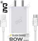 DVJ 80 W Quick Charge Wall Charger for Mobile with Detachable Cable (VIVO 80W FLASH CHARGE FOR Vivo V30 5G OR V25 PRO / V27 PRO 5G, Cable Included)