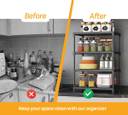 3-Tier Kitchen Countertop Storage Rack Perfect for creating a clutter-free environment while adding a sleek, modern touch to your kitchen or workspace. This organizer provides ample storage space for your kitchen appliances, spices, dishes, and other essentials