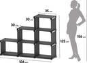 | Key Features | - 6-Tier Modular Design – Includes 6 adjustable cubes for organizing books, decor, and various household items., Customizable & Stackable – Flexible configuration allows you to stack, rearrange, or modify the shelf as needed, making it perfect for different spaces., Durable & Sturdy Construction – Made from high-quality materials, this shelf offers long-lasting stability to hold a variety of items., Versatile Use – Great for use in the living room, office, bedroom, kitchen, or any room needing additional storage., Easy Assembly – Simple DIY assembly with all tools and instructions included, allowing you to set it up in minutes., Modern Aesthetic – A sleek, minimalist design that complements any home decor style, from contemporary to traditional., Multi-Purpose – Perfect for books, plants, decorative items, electronics, or kitchen storage.
