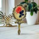 Dweloric Portable Folding Makeup Hand Mirror, Framed Metal Vanity Vintage Mirror Decorative Mirror (Floral Finish : Matt)