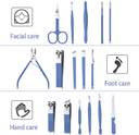 Manicure & Pedicure Set Small Easy to carry. Manicure Set - High Quality Stainless Steel, Durable, Corrosion-resistant, Sharp, Hard And Durable. Mini size, very portable, easy to carry when you go to travel. Small size of grooming kits makes it portable and lightweight, which is easy to carry, great for travel and home. The beautiful case is a great gift for yourself, families and friends. Hand Care Set for Women Hand care set including Large Nail Clipper Nail Clipper Cuticle Nipper Slanted Edge Nail Clipper Nail File V-Shaped Cuticle Trimmer Facial Treatment for Women Face care set including Eyebrow Scissors Eyebrow Tweezers Blackhead & Acne needle Ear Pick Nose Hair Scissors Manicure Pedicure Set for Women Foot Care Set for Women Foot care set including Cuticle Pusher and Nail Cleaner Scraping Knife Flat Callus Remover Oblique Callus Remover Curved Knife The Manicuring set with high strength, toughness, and abrasion resistance; Professional manicure kit is a perfect gift for yourself, families and friends; Useful set, protect your nail health, make you tidy and clean.