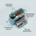 Quality of material : Crafted from premium Oxford cloth, our pouch ensures durability, while its high-quality mesh inner bag prevents odors and securely stores items for freshness, ensuring long-lasting use. Soft lining neat wiring : Our pouch, with soft lining and precise wiring, ensures durable protection for belongings while maintaining shape and structure, ideal for organizing stationery with seamless functionality. 5 pocket storage system : 1st main storage compartment 2nd marker or pen holders 3rd built-in mesh, 4th 2 built-in pockets , 5th Rear Metal zipper pocket. 2 built-in pockets : The pouch features two built-in pockets ideal for storing small items like post-it notes or paperclips. These versatile pockets can also hold ID cards or debit cards, providing easy access and organization. Rear Metal zipper pocket : The metal zipper pocket securely holds longer items like rulers and compasses. Provides dedicated space, adding versatility and practicality for school, office, or personal use.