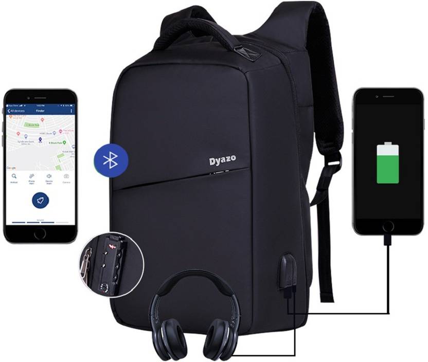 Dyazo Medium 25 L Laptop Backpack Anti Theft Laptop Backpack with Bluetooth connectivity and Mobile App (Black)