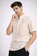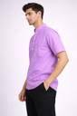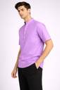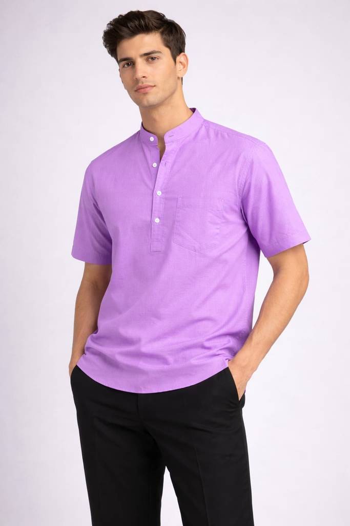 Solid lavender kurta-style shirt with mandarin collar, half button placket, short sleeves, and chest pocket. Made from breathable lightweight fabric for everyday comfort.