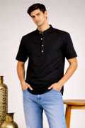 Men Regular Fit Solid Mandarin Collar Casual Shirt