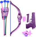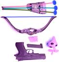 Attractive pretend play for kids, which engages kids for long hours in imaginative play, these kinds of imaginative toy encourage healthy development of toddlers, Multi color gun is made from durable plastic that would not break easily if it's dropped from the elevated height, Bow and arrow archery toy for kids is idle for teaching kids how to safely shooting archery, it helps kids to develop their hand and eye coordination and motor skills, Guns for kids boys is made of non-toxic material and design of the gun-type has no sharp points, so it is safe and reliable for people, Plastic multi color bow and arrow set comes with beautifully detailed bow and 3 arrows. Compete out with friends and have a competitive game of archery.