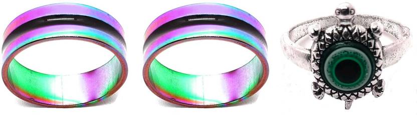 Set of 3 Rings for Men & Women, Multicolor-Green Alloy Ring
