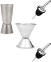 Dynore Set of 2 Double Sided Peg measure with Set of 2 Stainless steel wine pourer. 4 - Piece Bar Set (Stainless Steel)