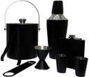 | Model Name | - Stainless Steel 8 Pcs Black Bar Set Small- Cocktail Shaker 500 ml, Ice Bucket 1000 ml, Hip Flask 7 oz, Shot Glass 50 ml, Bottle Opener, Ice Tong, Peg Measure,