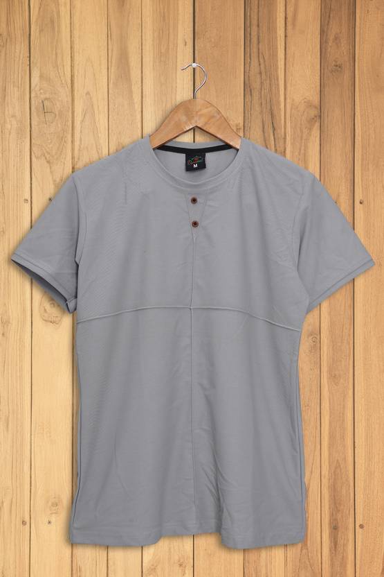 DyrectDeals Solid Men Round Neck Grey T-Shirt