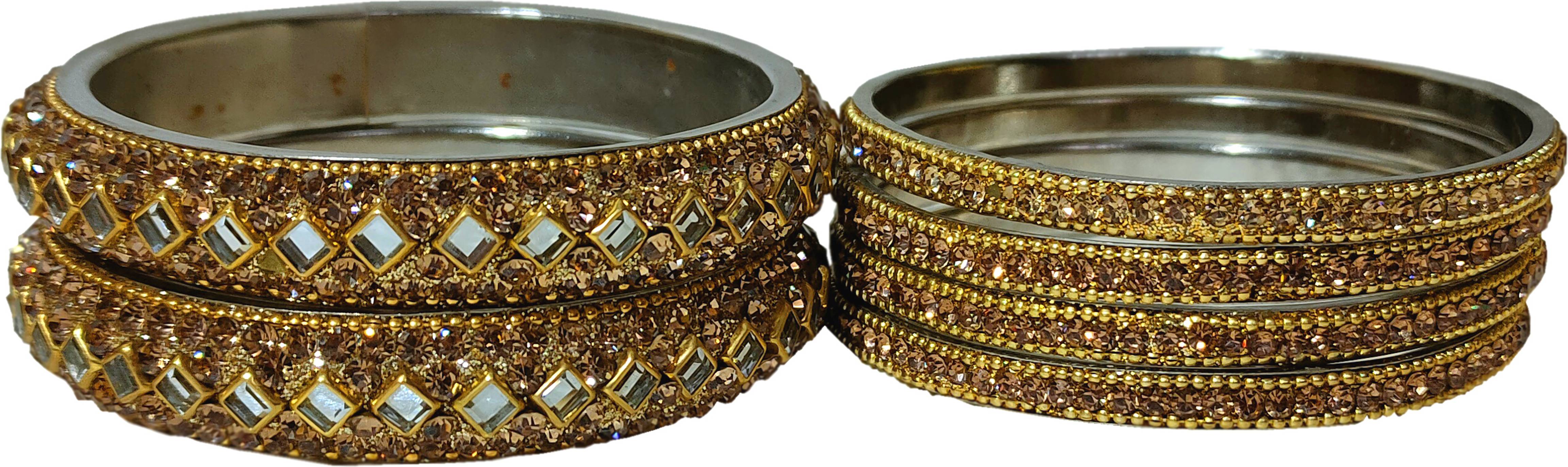 SET OF 2 GOLDEN STONE KADA & 4 BANGLES IN METAL