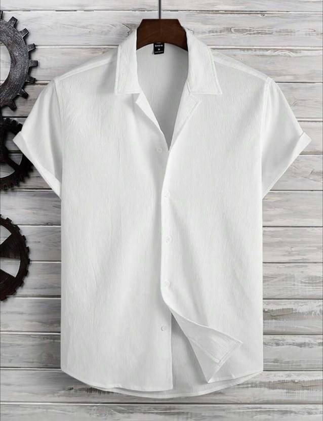 Men Regular Fit Solid Cut Away Collar Casual Shirt