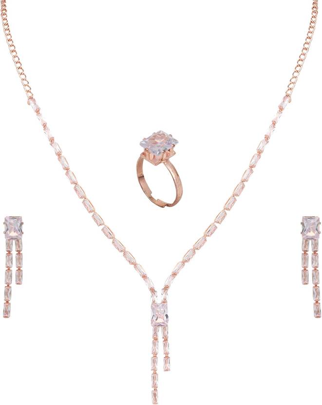 Thanks to its carefully curated elegant plating and finish, this women’s jewellery set includes a necklace with an attached pendant, earrings, and an adjustable ring, each element crafted for effortless styling. Also, this set's lightweight structure makes it suitable for comfortable wear throughout the day or evening, allowing you to enjoy both elegance and comfort in one.