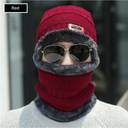 Winter Knit Beanie Cap With Neck Muffler|Neck Warmer|Neck Scarf Set For Mens and Womens (Color-Red)