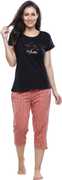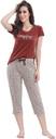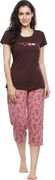 DZZO Women Printed Brown, Grey Top & Capri Set