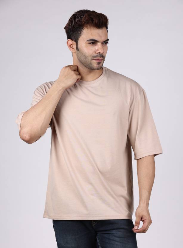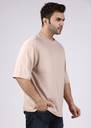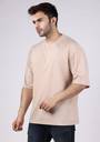 E-MAX Men Solid Round Neck Cotton Blend Beige T-Shirt