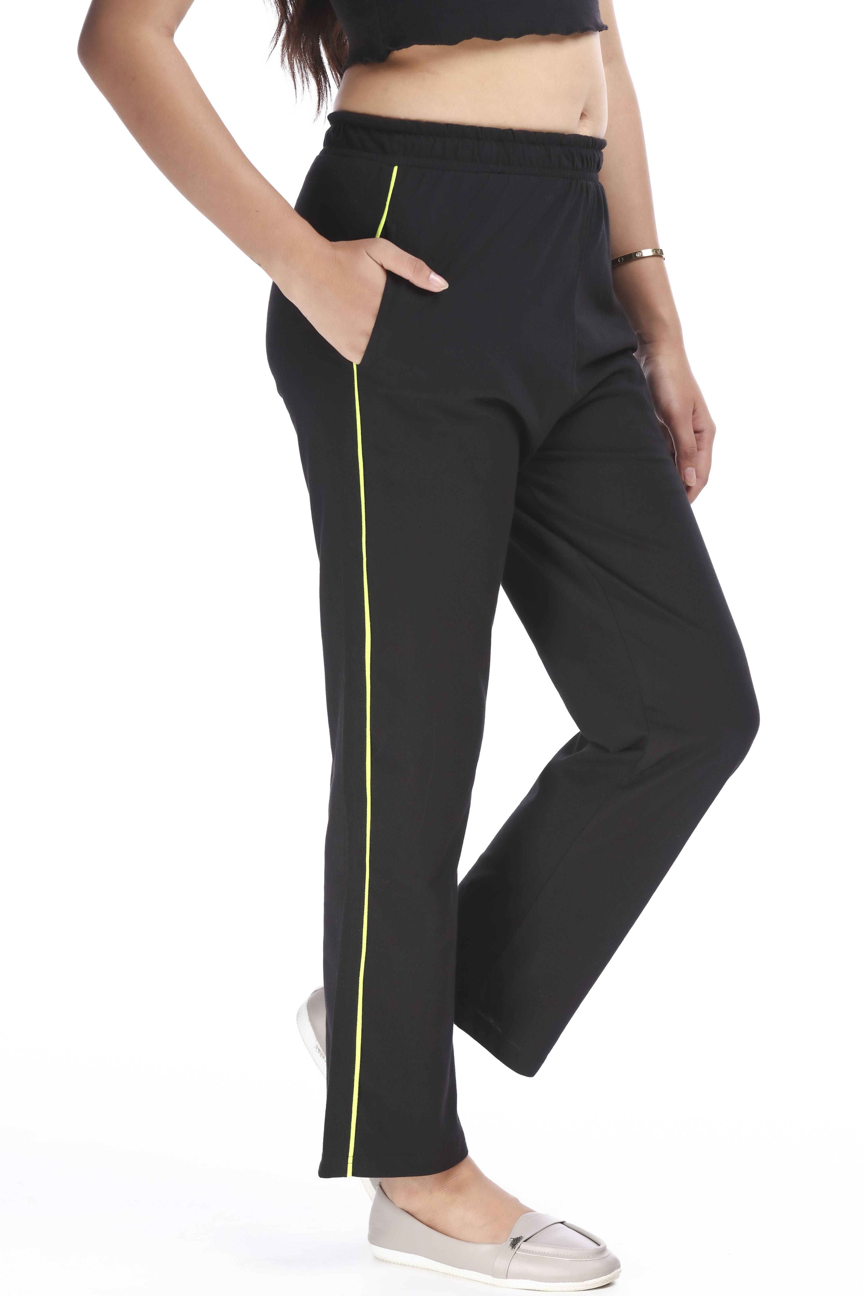 E-MAX Women’s Cotton Blend Knitted Track Pant with Side Stripe, Comfortable Regular Fit
