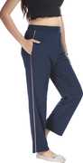 E-MAX Women’s Cotton Blend Knitted Track Pant with Side Stripe, Comfortable Regular Fit