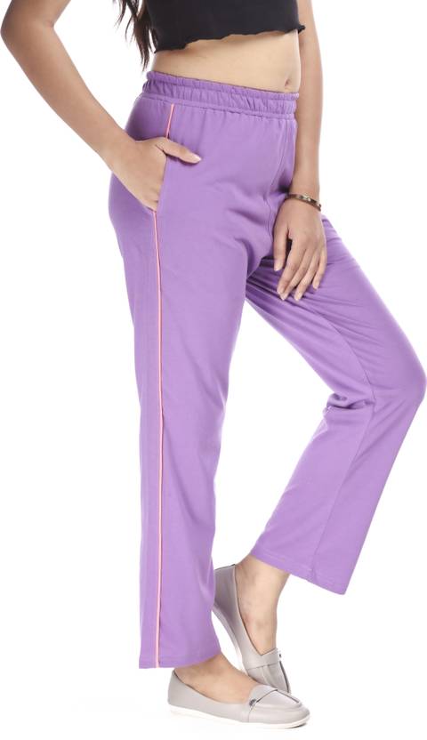 E-MAX Women’s Cotton Blend Knitted Track Pant with Side Stripe, Comfortable Regular Fit
