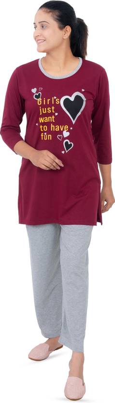 E-MAX Women's nightsuits are the epitome of comfort and style, seamlessly blending relaxation with chic design. Crafted from soft breathable cotton blend fabric, these nightsuits provide the perfect sanctuary for unwinding after a long day. These nightsuits come in a variety of styles to suit every taste. Adorned with beautiful prints, each style comes in attractive colours that exudes effortless elegance. With features like right side pocket, elasticized waistbands and relaxing fit, nightsuits ensure a comfortable fit that keeps you relaxed throughout the day and night in every season. Embrace relaxation in style with E-MAX women's nightsuits that not only promise a restful night's sleep but also make lounging at home a luxurious experience.