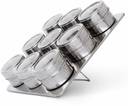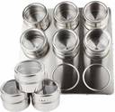 Featuring a unique design with 9 separate jars in a revolving rack design, the stainless steel spice rack is an ideal solution for storing and retrieving spices, seasonings, herbs and more. With an efficient design enabling easy retrieval of spices when needed, use this spice rack to organise your kitchen and save valuable time while cooking. You can store a great selection of your finest spices, herbs, condiments, mouth fresheners and more in these jars.