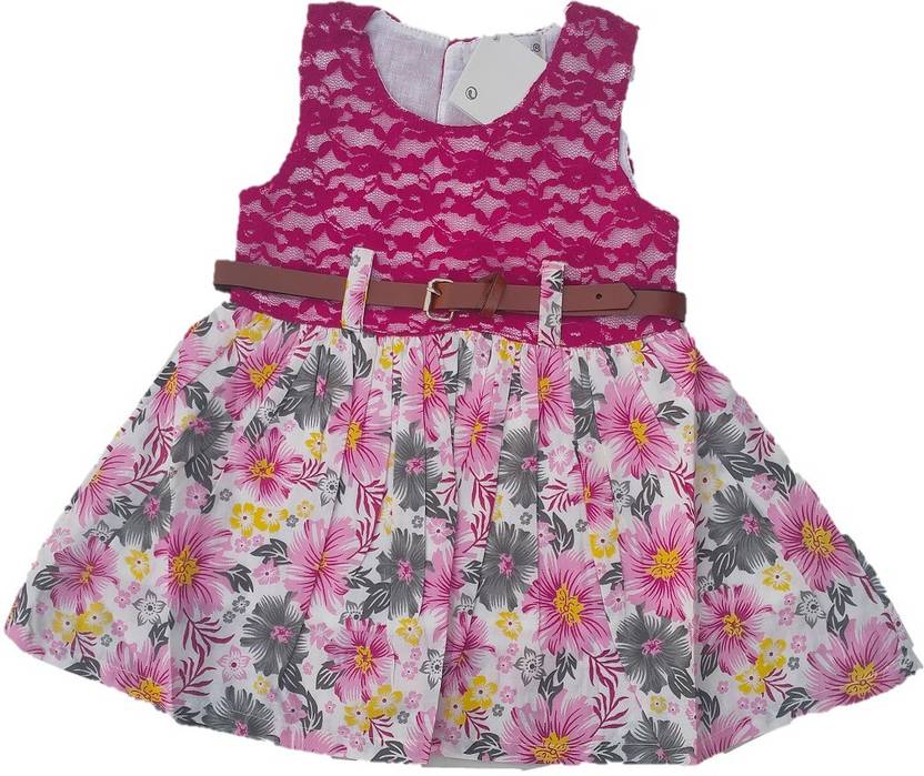 Baby Girls Midi/Knee Length Casual Dress (Pink, Sleeveless)