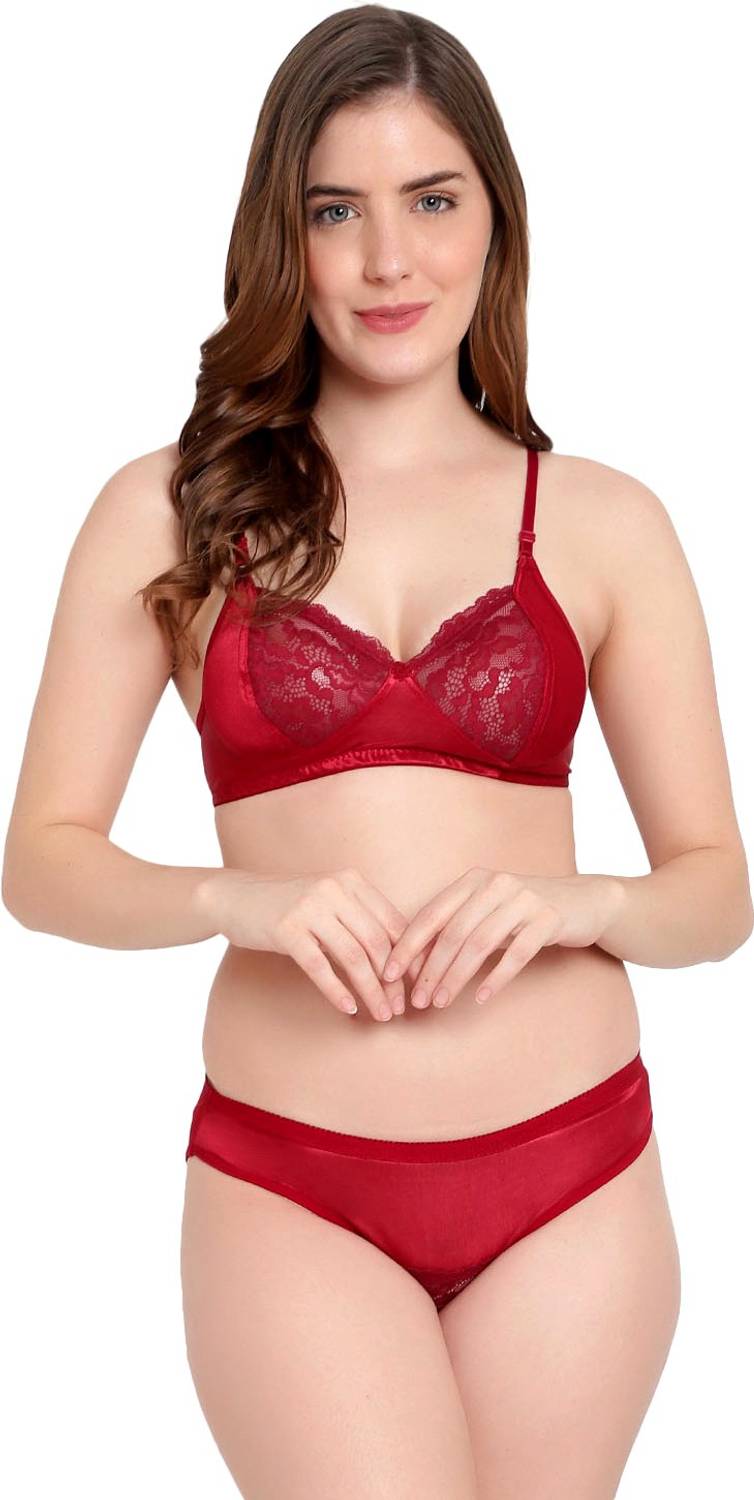 Earmark Bra & Panty Set Self Design Maroon Lingerie Set