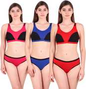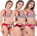 Chirography Bra & Panty Set Solid Maroon, Red, Pink, Grey Lingerie Set