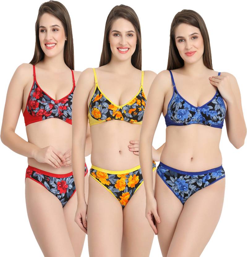 Tace Flower Print Lingerie Sets Pack Of 3