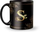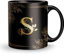 Earnam Letter S alphabet Design Printed Black Ceramic Ceramic Coffee Mug (320 ml)