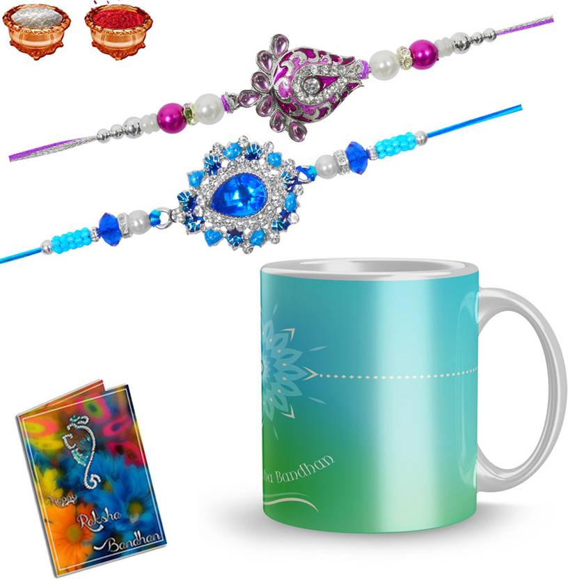 1 CUP 2 rakhi 1 Greeting Card 1 Roli Chawal