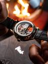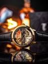 The art of time. A full view of the pure intricacy and stunning elegance of the automatic bridge movement, highlighted by the sleek roman index 12 and 6 in a unique geometric style. Classically designed and styled throughout, it is a timetelling masterpiece on your wrist.