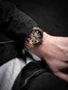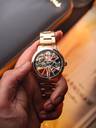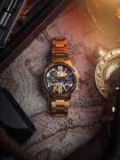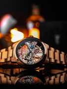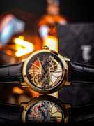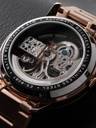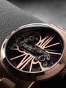 The art of time. A full view of the pure intricacy and stunning elegance of the automatic bridge movement, highlighted by the sleek roman index 12 and 6 in a unique geometric style. Classically designed and styled throughout, it is a timetelling masterpiece on your wrist.