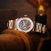 The watch as a whole looks amazing.It immediately grabs the attention of everyone in the room. The only con is that, due to the skeleton design , the minute and hour hand of the watch are sometimes hard to locate.Also, we cannot see time during nighttime, since there's no luminescent material on the minute and hour hand.
