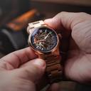 The watch as a whole looks amazing.It immediately grabs the attention of everyone in the room. The only con is that, due to the skeleton design , the minute and hour hand of the watch are sometimes hard to locate.Also, we cannot see time during nighttime, since there's no luminescent material on the minute and hour hand.