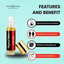 Evoking a sense of tranquillity and calm, this roll-on perfume belongs to the floral fragrance family. The top note features a spicy burst that instantly awakens the senses, making a bold and refreshing first impression. As the fragrance settles, the heart note of oriental scents provides warmth and richness, wrapping you in an inviting aroma. The base note of white musk lingers softly, leaving a subtle yet enduring finish that evokes peace and serenity.