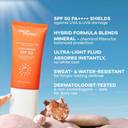 | Key Features | - Hybrid SPF with Invisible Wear – Encapsulated mineral + chemical filters provide maximum protection with zero white cast., Broad-Spectrum Defence – SPF 50 with PA++++ shields skin from harmful UVA rays (ageing) and UVB rays (burning)., Sweat & Water-Resistant Finish – Stays effective even in humid, active, or outdoor conditions., Lightweight Gel-Fluid Texture – Absorbs quickly, spreads evenly, and leaves no greasiness or heaviness., Smooth, Skin-Friendly Application – Non-pilling formula layers seamlessly under makeup or skincare., Sustainable & Travel-Friendly Packaging – Comes in an airless pump-based tube for hygiene, easy dispensing, and reduced product wastage., How to Use: Apply generously to face and neck as the last step of your skincare routine. Reapply every 3–4 hours, or after sweating, swimming, or prolonged sun exposure.